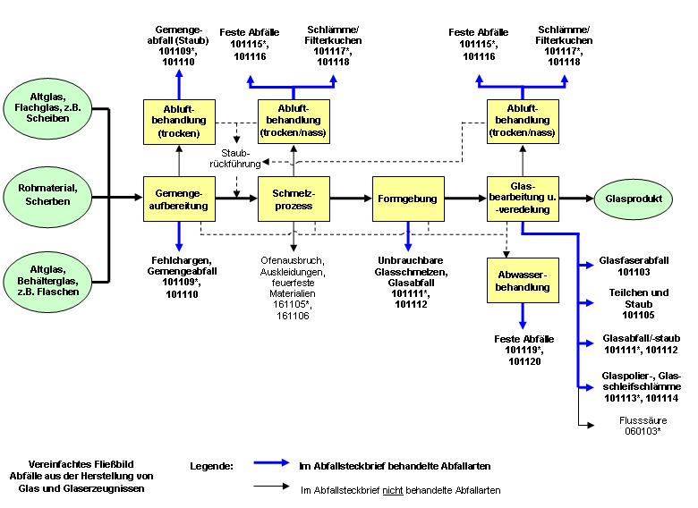 Im Abfallsteckbrief werden die Herstellung und die Verarbeitung von Flach-, Behälter-, Gebrauchs- und Spezialglas berücksichtigt.