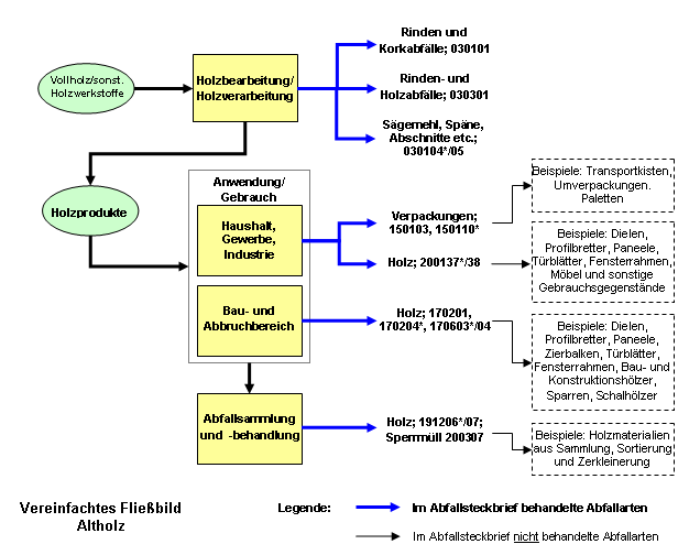 - Altholz, das bei der Holzbearbeitung und -verarbeitung anfällt, sogenanntes Industrierestholz (Abfallgruppe 03)