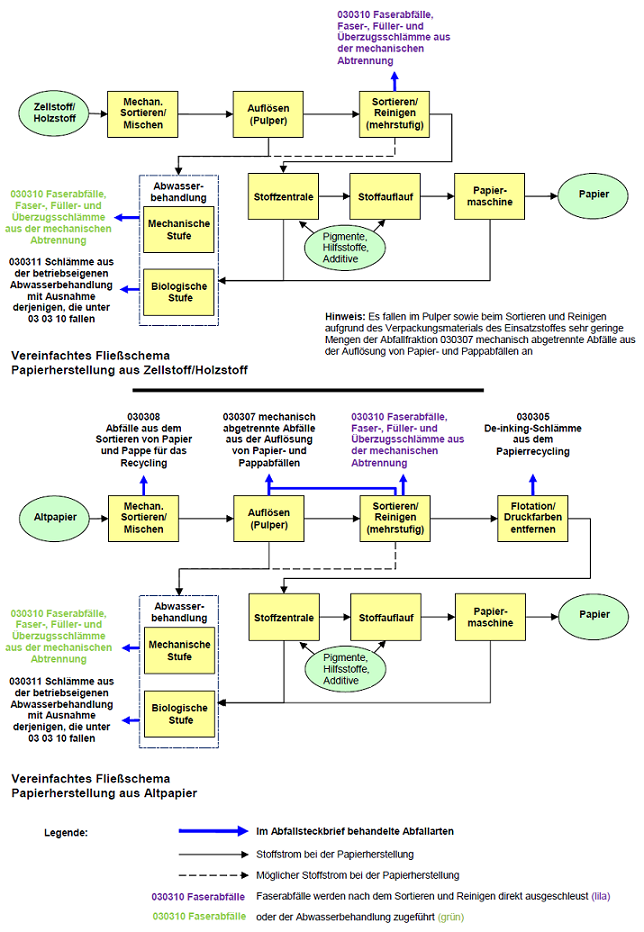 Die Ausführungen beschränken sich auf die gängigen bei der Papierherstellung anfallenden Abfälle. Nicht enthalten sind die in den typischen Nebenprozessen dieser Branche, z. B. in Heizkraftwerken, entstehenden Abfälle. Die bei der Zellstoffherstellung anfallenden Abfälle sind im Abfallsteckbrief 0303 Zellstoffherstellung beschrieben.