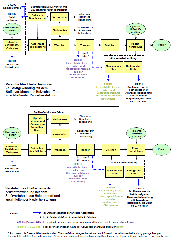 Die Ausführungen beschränken sich auf die gängigen bei der Zellstoffherstellung mit dem Sulfat- und Sulfitverfahren anfallenden Abfallarten. Nicht berücksichtigt sind das mechanische Aufschlussverfahren und die typischen Nebenprozesse dieser Branche, z. B. Heizkraftwerke und die Verwertungsprozesse der bei der Zellstoffherstellung prinzipbedingt anfallenden Lignin-Abbauprodukte (z.B. Ligninsulfonsäuren).
