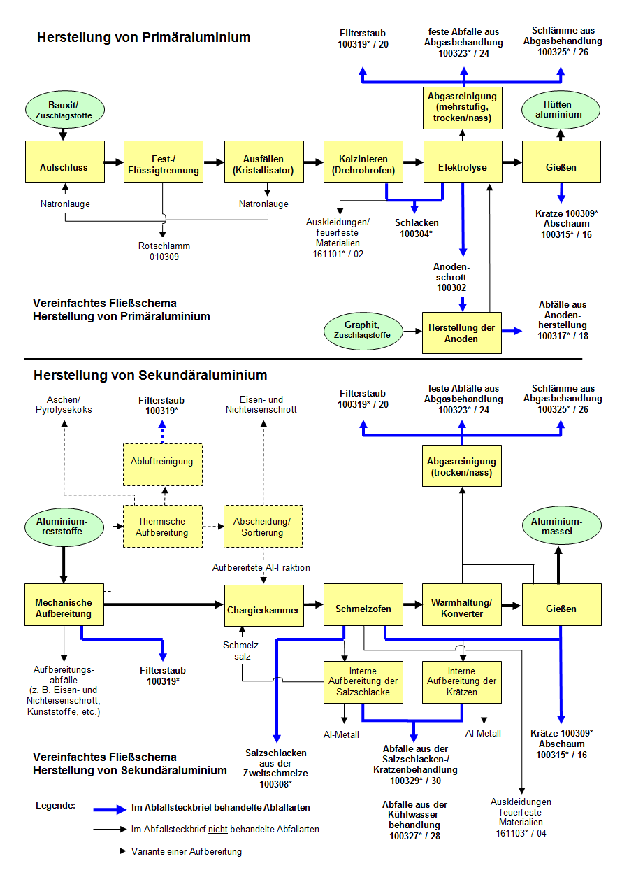 Der Abfallsteckbrief berücksichtigt die in der Primär- und Sekundäraluminiumherstellung anfallenden Abfälle der Untergruppe 1003.