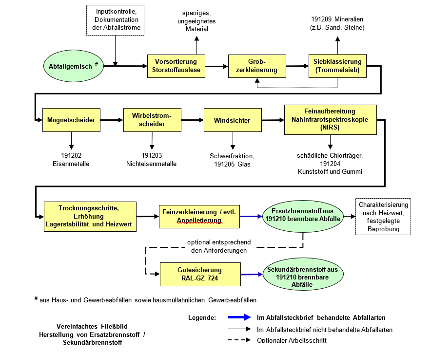 Gewinnung von Brennstoffen aus Haus- und Gewerbeabfällen sowie hausmüllähnlichen Gewerbeabfällen mittels mechanischer Behandlung (Quelle: ABAG-itm; überarbeitet durch Umweltinstitut Leipzig e.V., 2018)